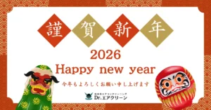 謹んで新年のご挨拶を申し上げます。旧年中は格別のご厚情を賜り、誠にありがとうございました。2025年は、より満足度の高いサービスを提供できるよう努めて参りますので、本年もお引き立てのほど、宜しくお願いいたします。皆様とご家族の皆様のご健康とご多幸を心よりお祈り申し上げます。令和七年元旦 Dr.エアクリーン